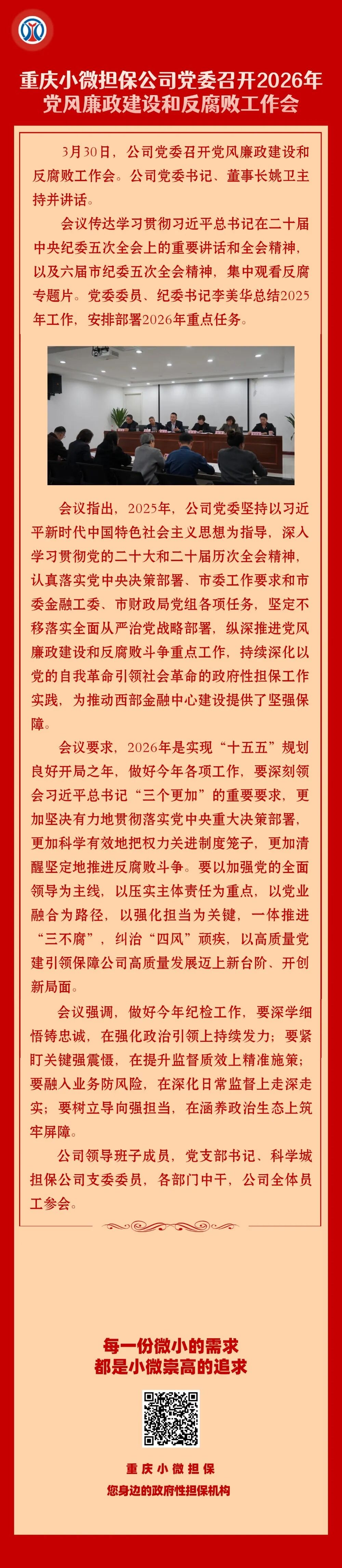 重庆小微担保公司党委召开2026年党风廉政建设和反腐败工作会